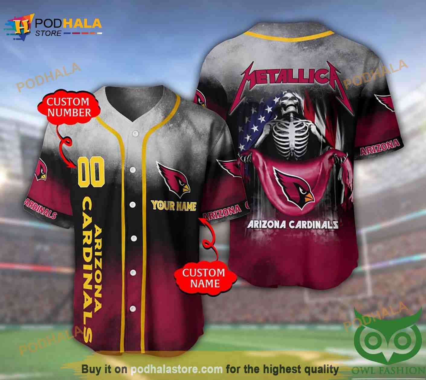 Arizona Cardinals 3D Personalized Name Number Metallica 3D Baseball Jersey