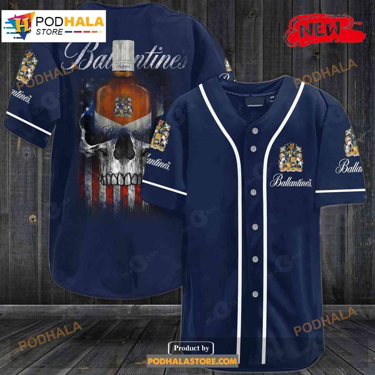 Ballantines Whiskey Usa Flag Skull All Over Print Navy Baseball Jersey
