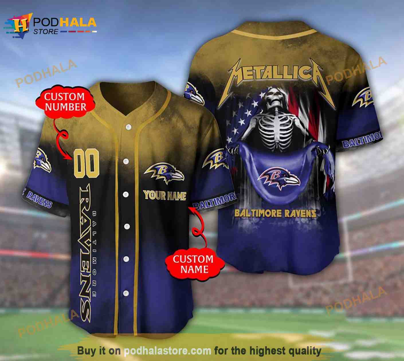 Baltimore Ravens Custom Name Number Metallica 3D Baseball Jersey