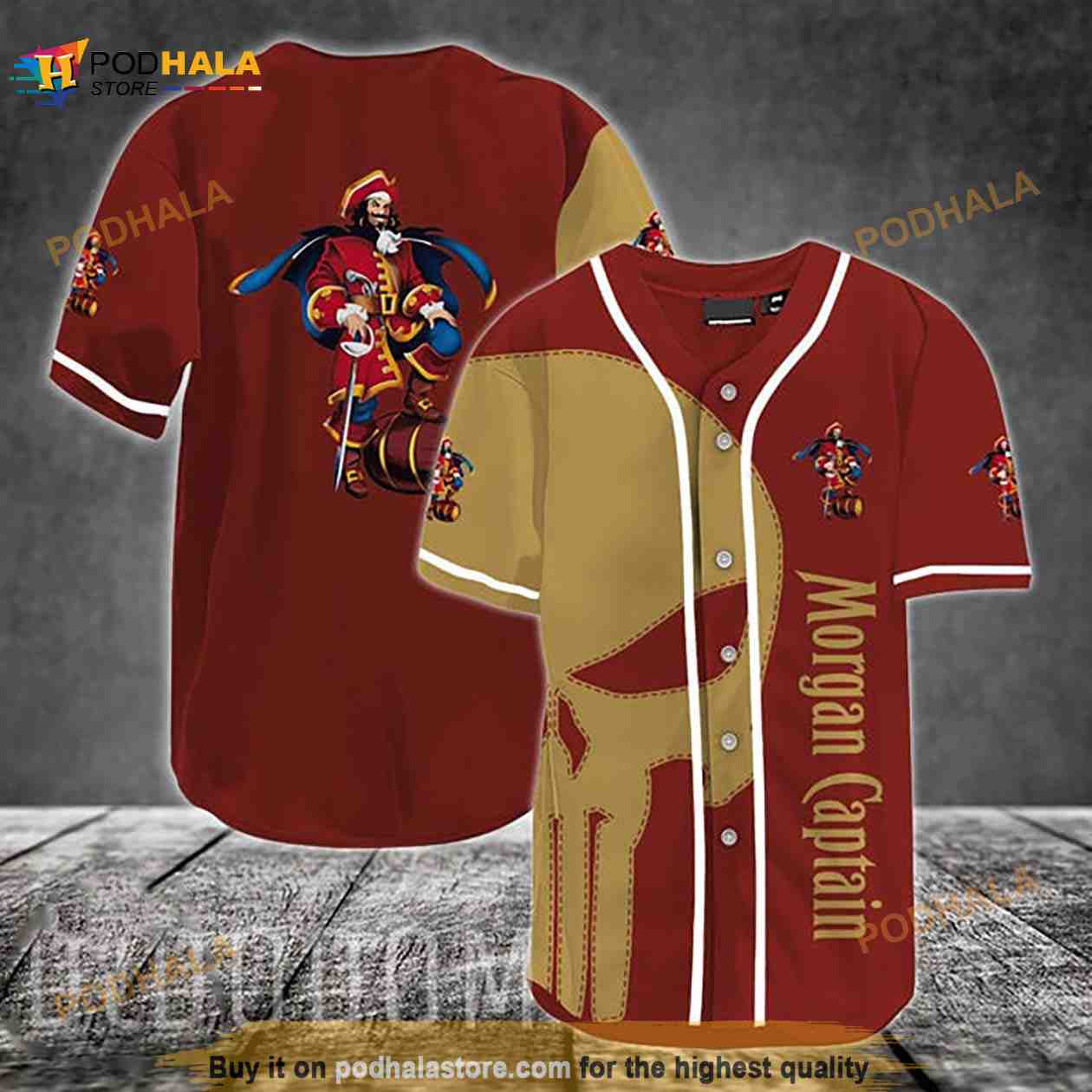 Brown Skull Captain Morgan 3D Baseball Jersey