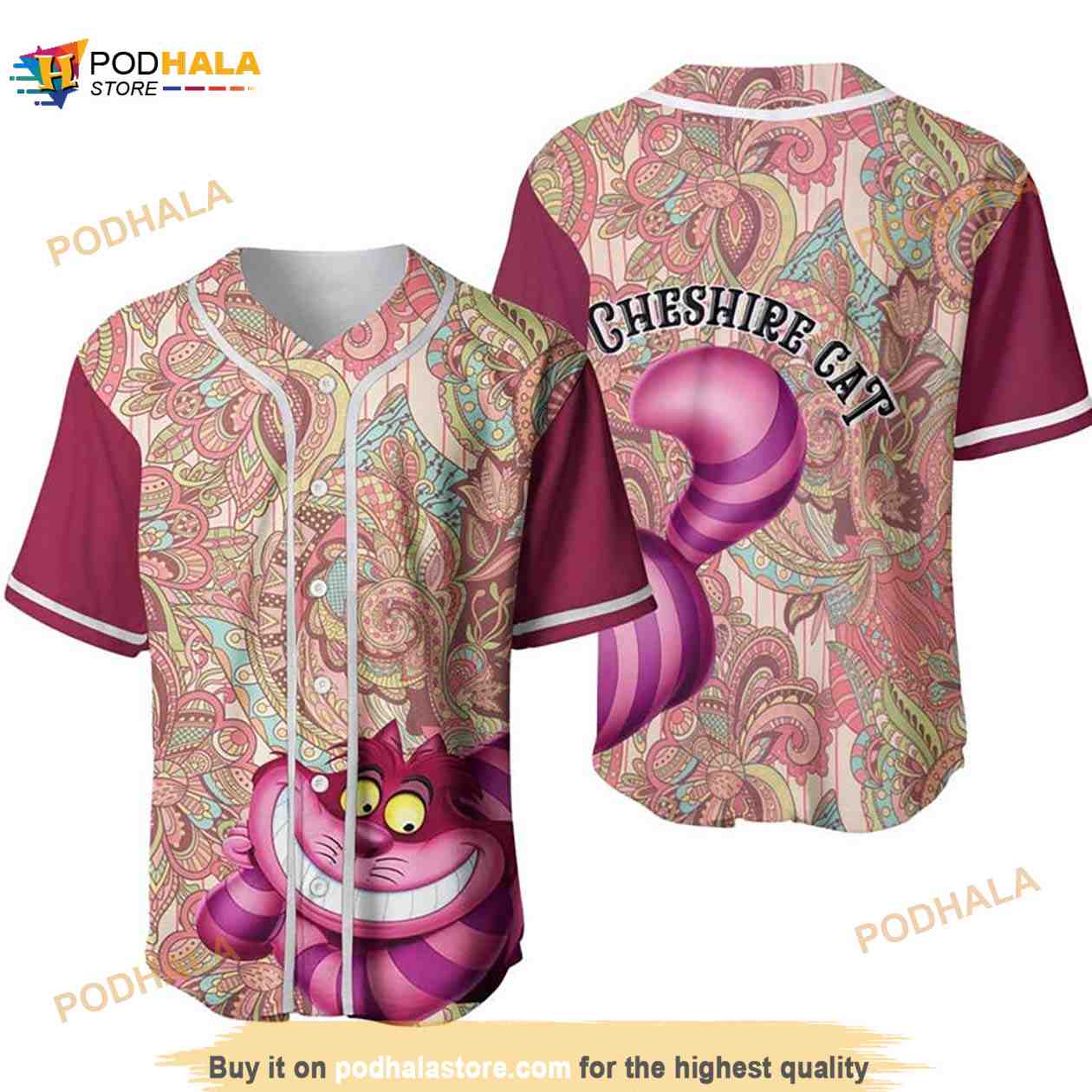 Cheshire Cat Disney Flowery Pattern All Over Print 3D Baseball Jersey