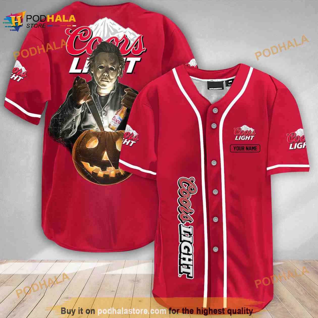 Custom Name Scary Michael Myers Pumpkin Coors Light 3D Baseball Jersey