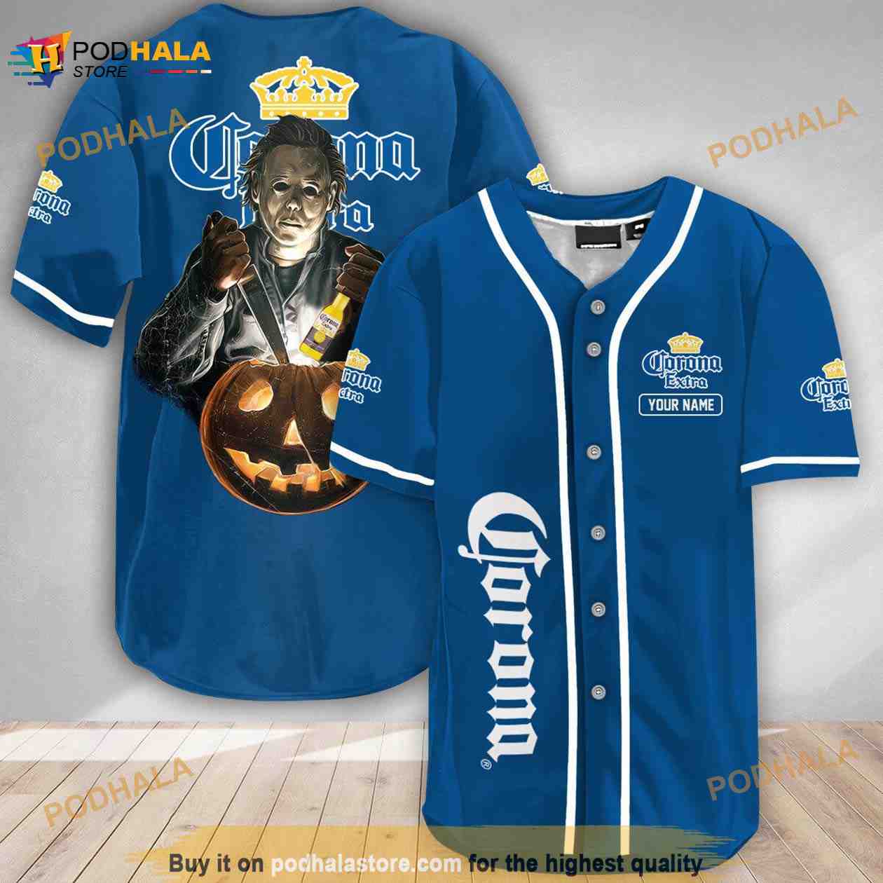 Custom Name Scary Michael Myers Pumpkin Corona Extra 3D Baseball Jersey