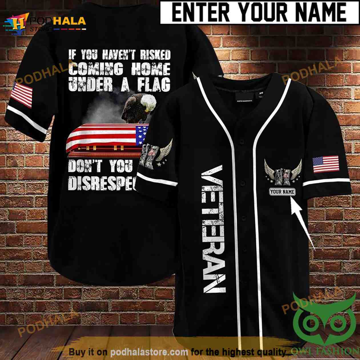 Custom Name Veteran Black 3D Baseball Jersey Shirt