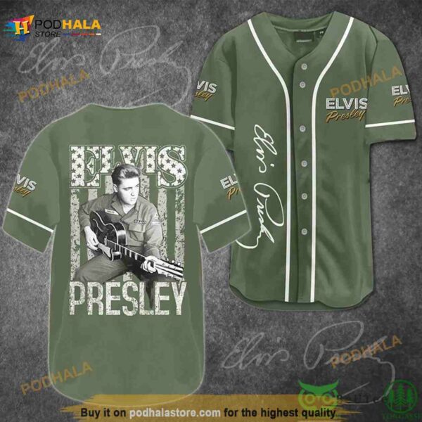 Elvis Presley Playing Guitar Green 3D Baseball Jersey Shirt