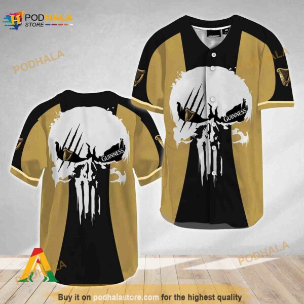 Ghost Head White Skull Guinness Beer 3D Baseball Jersey