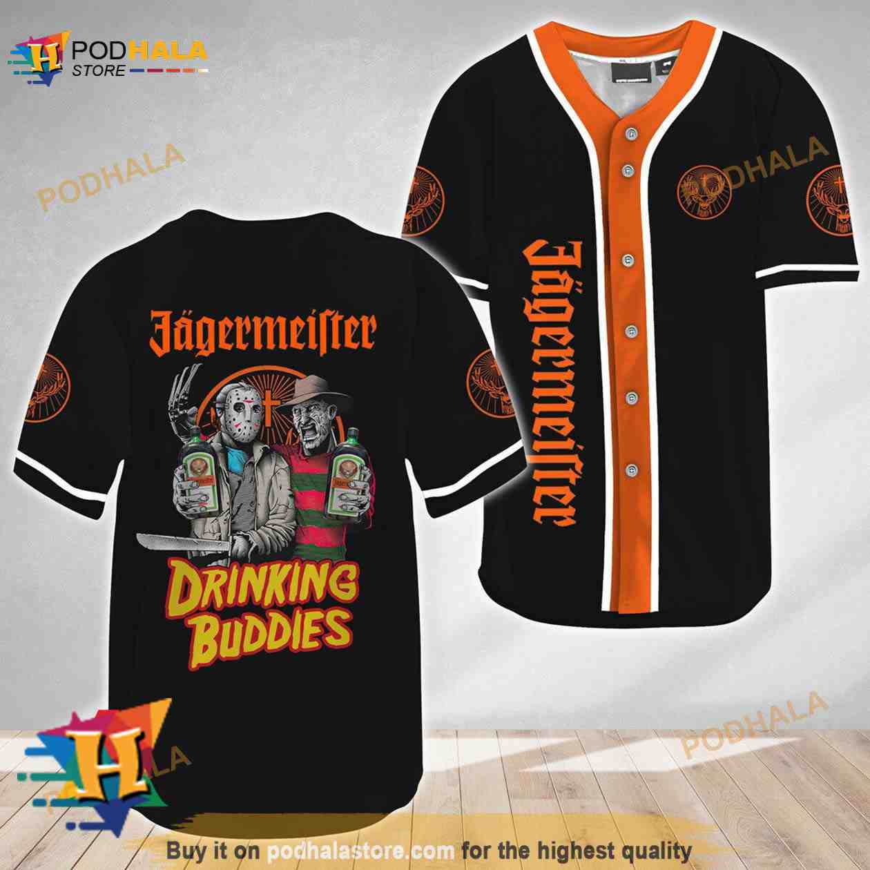 Horror Freddy and Jason Drinking Buddies Jagermeister 3D Baseball Jersey
