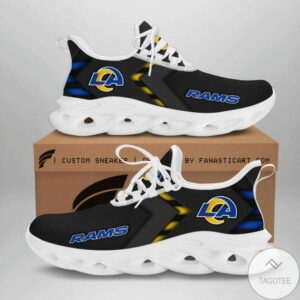This Los Angeles Rams Max Soul Shoes is a breathable, lightweight, and comfortable casual outdoor shoe that has a unique design. It is made of a mesh fabric which makes it sweat absorbent and breathable, while the rubber bottom ensures traction, comfort, and durability. It is available in two colors: black or white sole. There are two styles of shoelace holes so you can choose your preference.