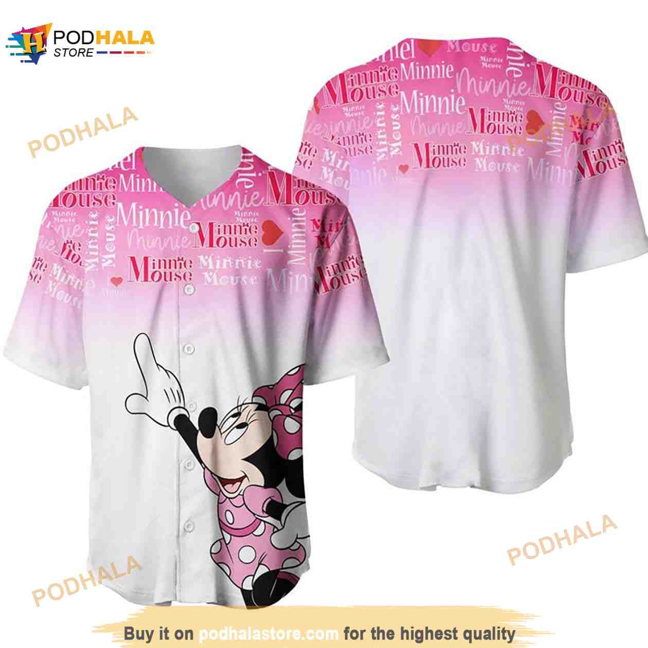 Minnie Mouse Quotes Pattern 3D Baseball Jersey – Ombre Pink White