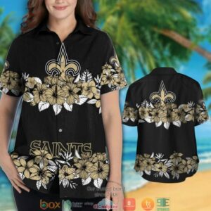 - This New Orleans Saints Hibiscus Flower Line Hawaiian Shirt, Short feels soft and smooth, making it comfortable to wear, short material: 95% Polyester and 5% spandex.