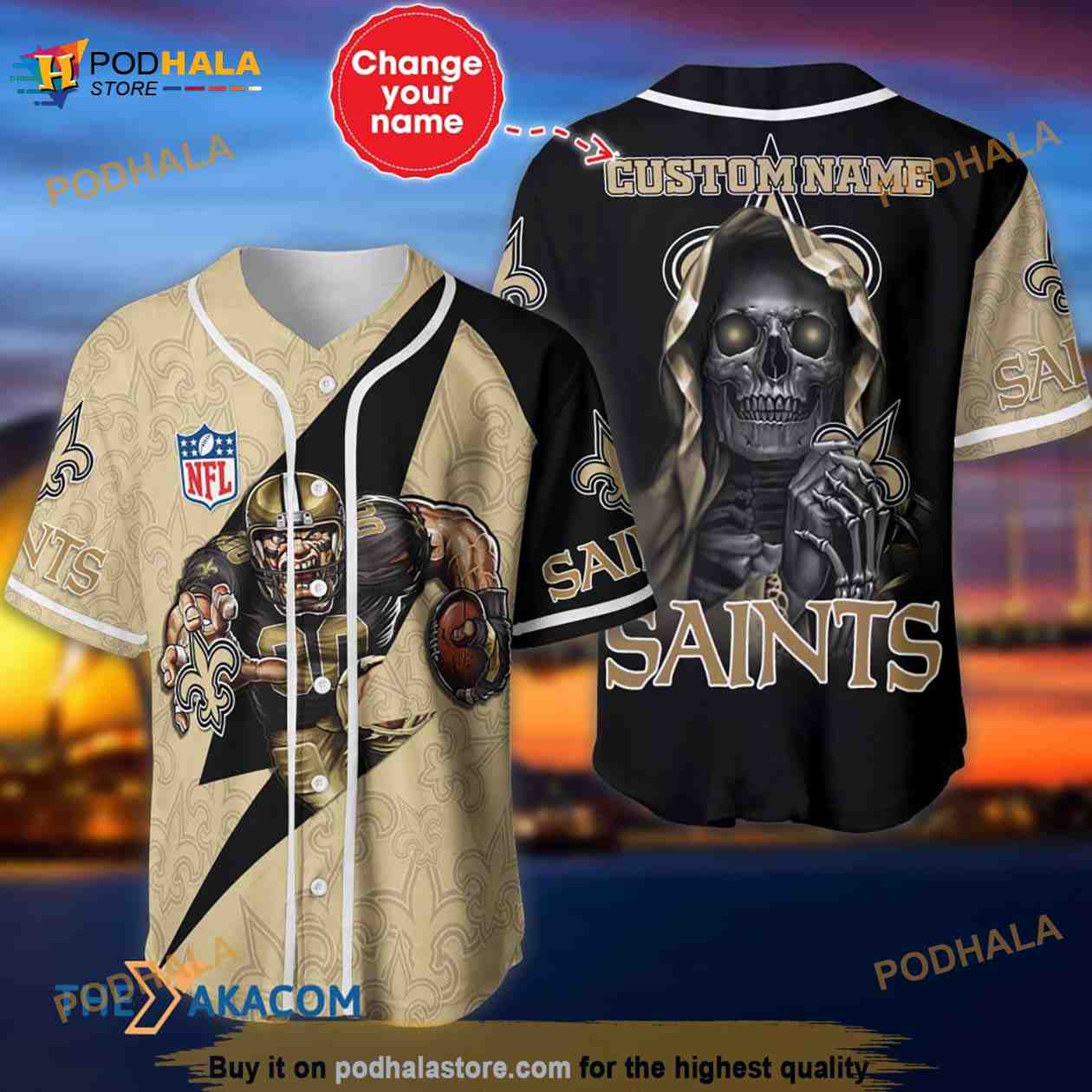 New Orleans Saints Skull Pattern Personalized Custom Name 3D Baseball Jersey Shirt