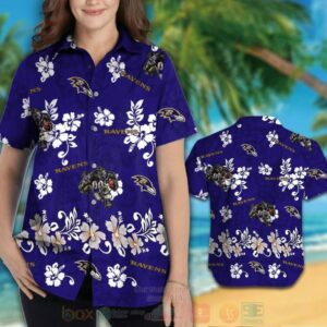 • This Nfl Baltimore Ravens Full Navy Hibiscus Flower Hawaiian Shirt, Short feels soft and smooth, making it comfortable to wear, short material: 95% Polyester and 5% spandex.