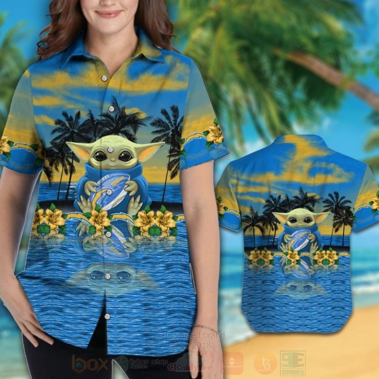 - This Nfl Los Angeles Chargers And Baby Yoda Hawaiian Shirt, Short feels soft and smooth, making it comfortable to wear, short material: 95% Polyester and 5% spandex.