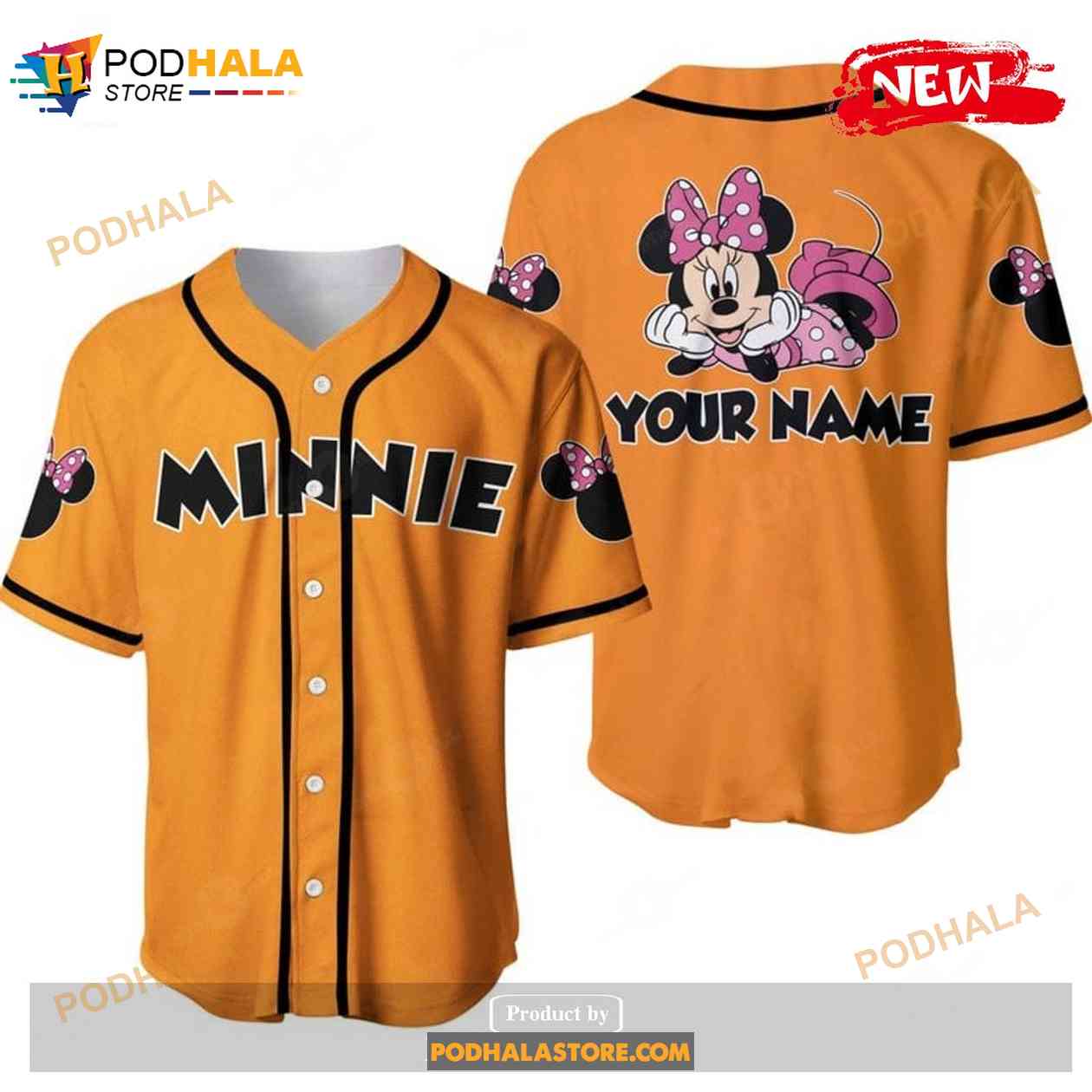 Personalized Chilling Minnie Mouse Disney Orange Design All Over Print Baseball Jersey
