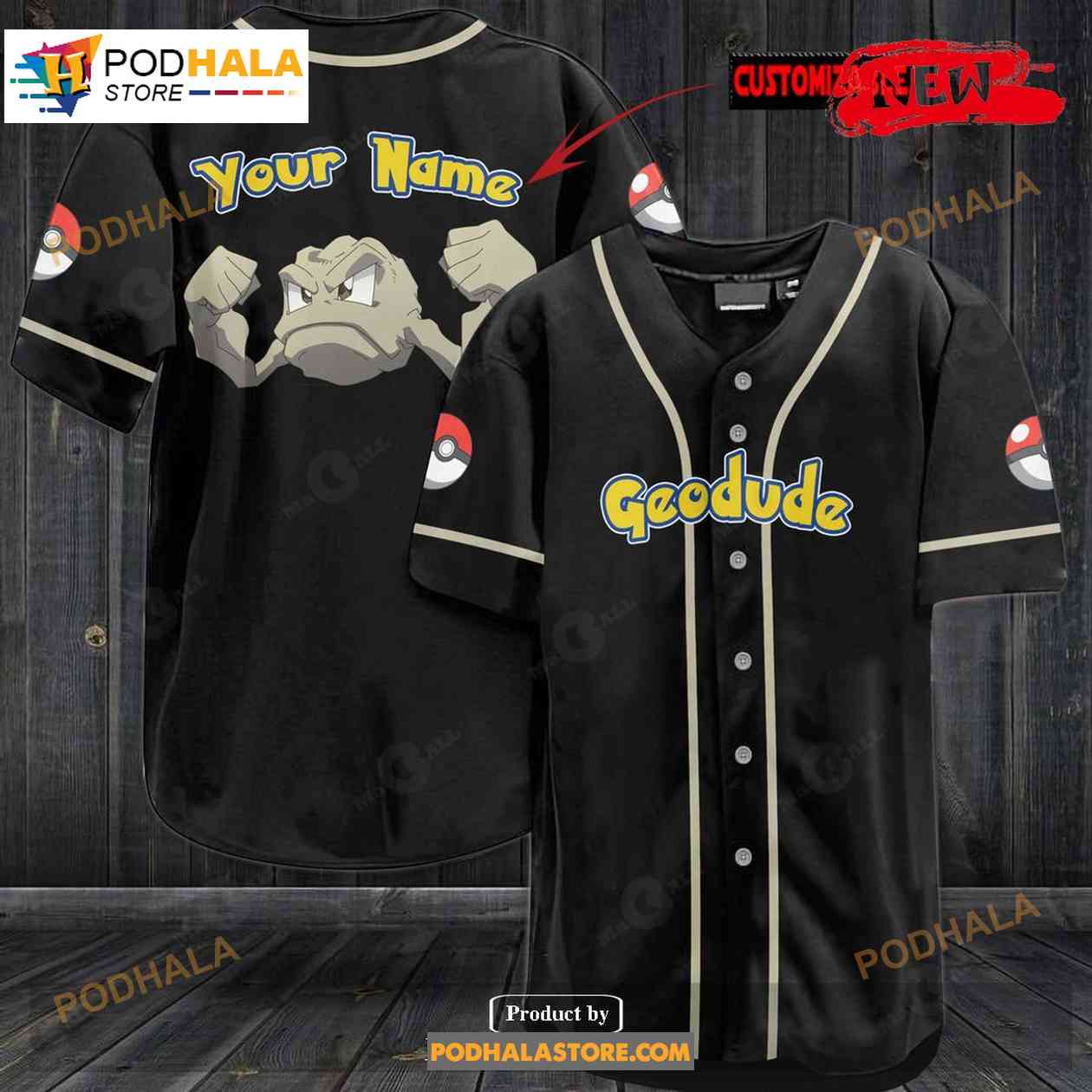 Personalized Geodude Pokemon Black Design Baseball Jersey