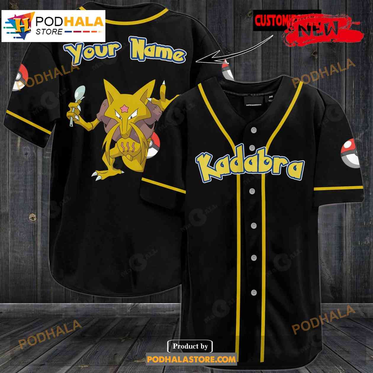 Personalized Kadabra Black Pokemon Baseball Jersey
