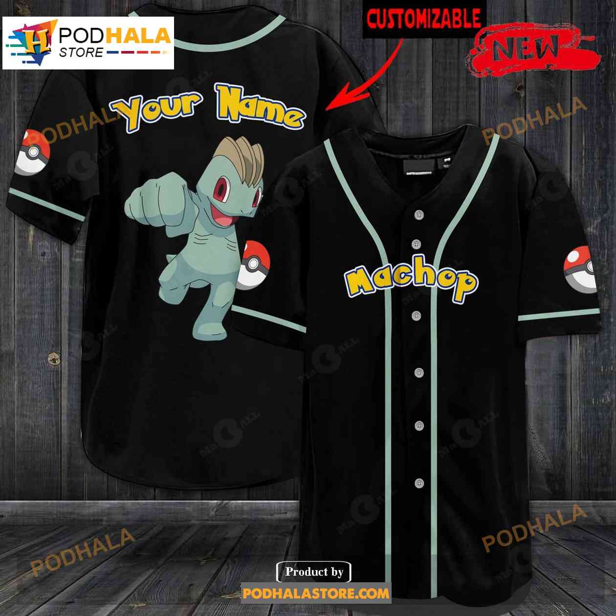 Personalized Machop Pokemon Black Design Baseball Jersey