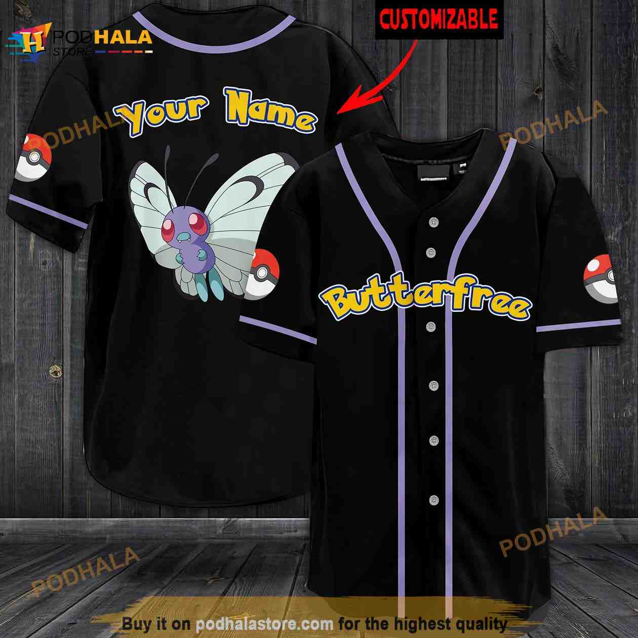 Personalized Name Butterfree Pokemon 3D Baseball Jersey