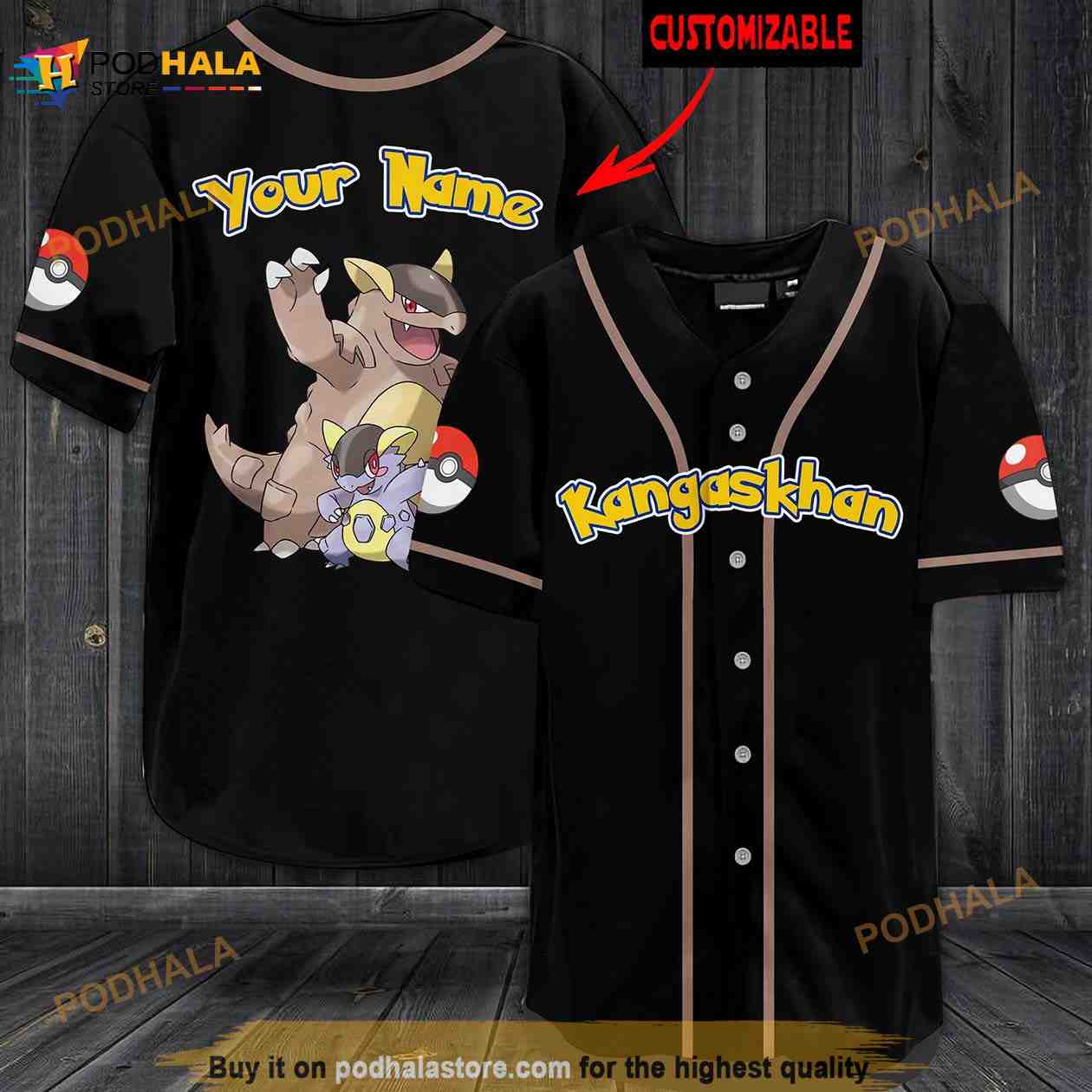 Personalized Name Kangaskhan Pokemon 3D Baseball Jersey