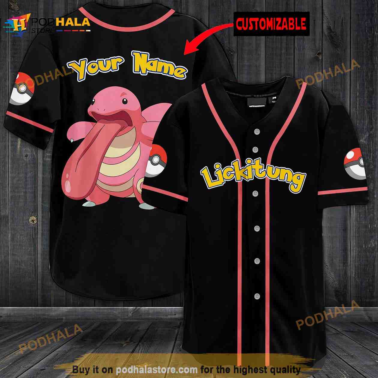 Personalized Name Lickitung Pokemon 3D Baseball Jersey