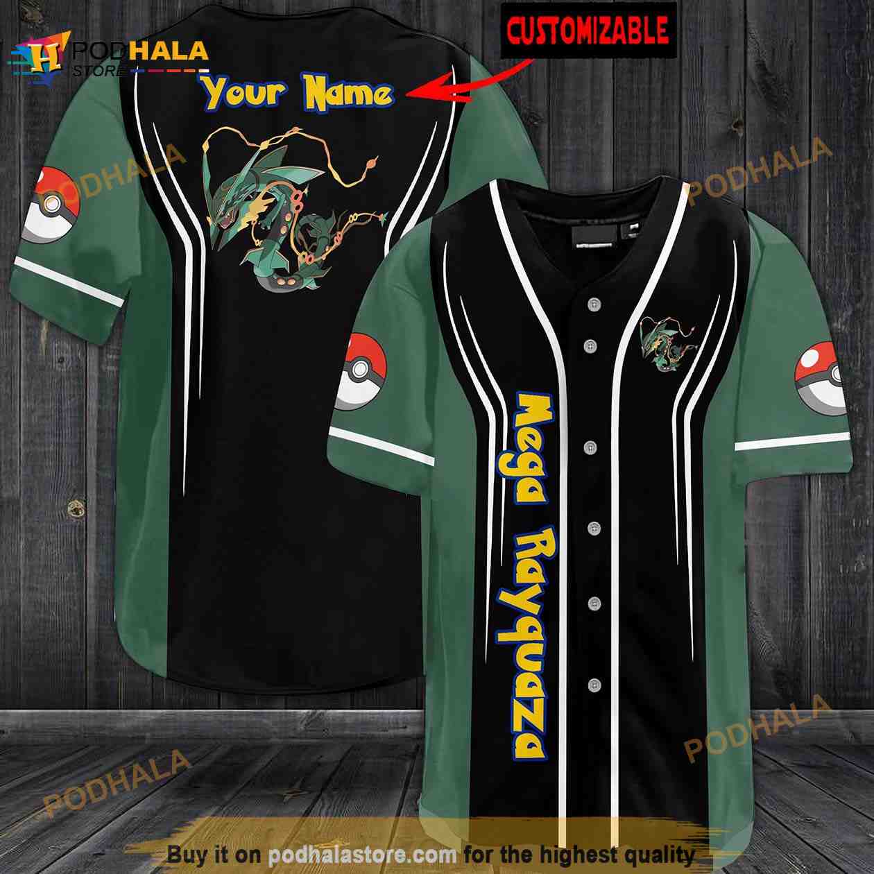 Personalized Name Mega Rayquaza Pokemon 3D Baseball Jersey