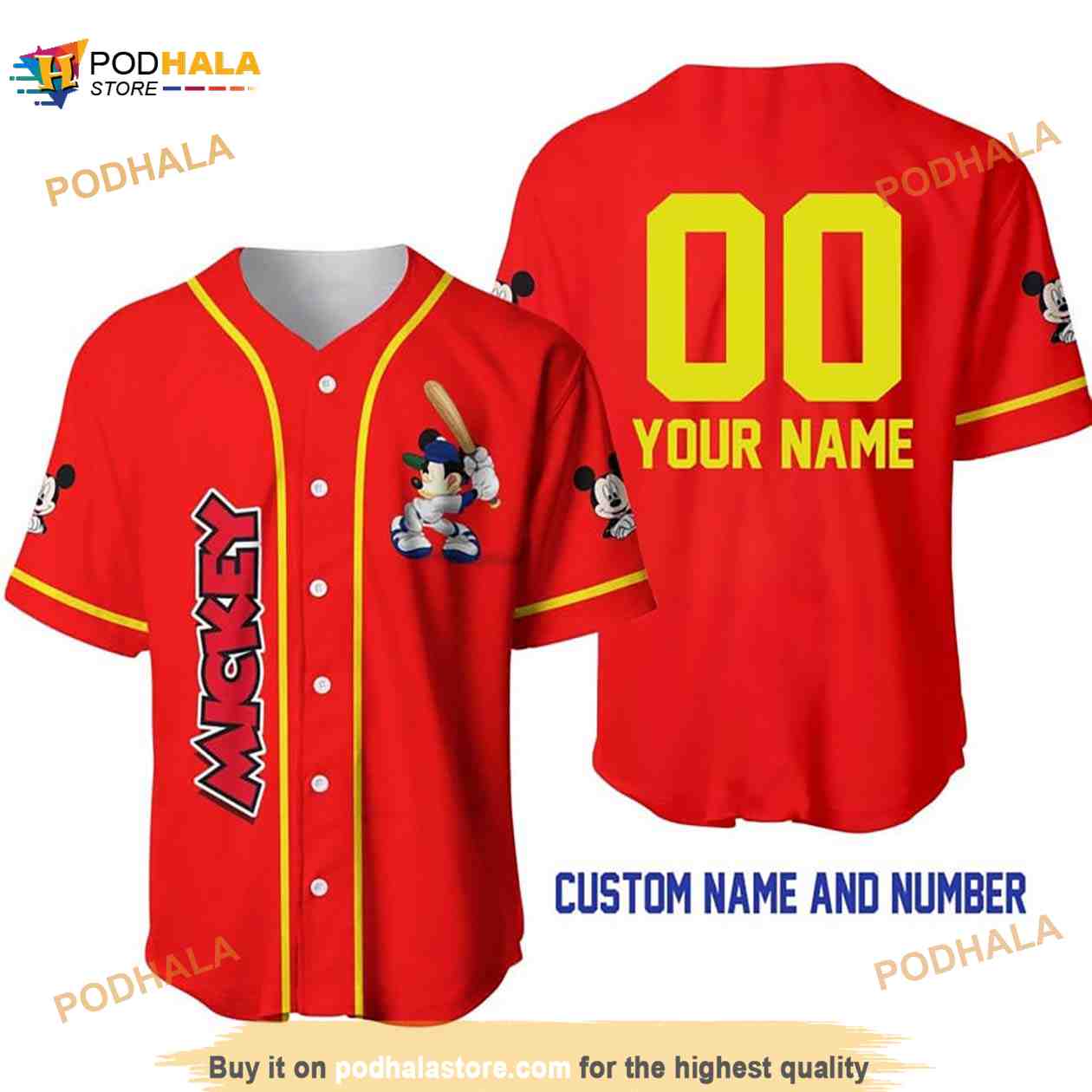Personalized Name Mickey Mouse Playing Baseball 3D Baseball Jersey