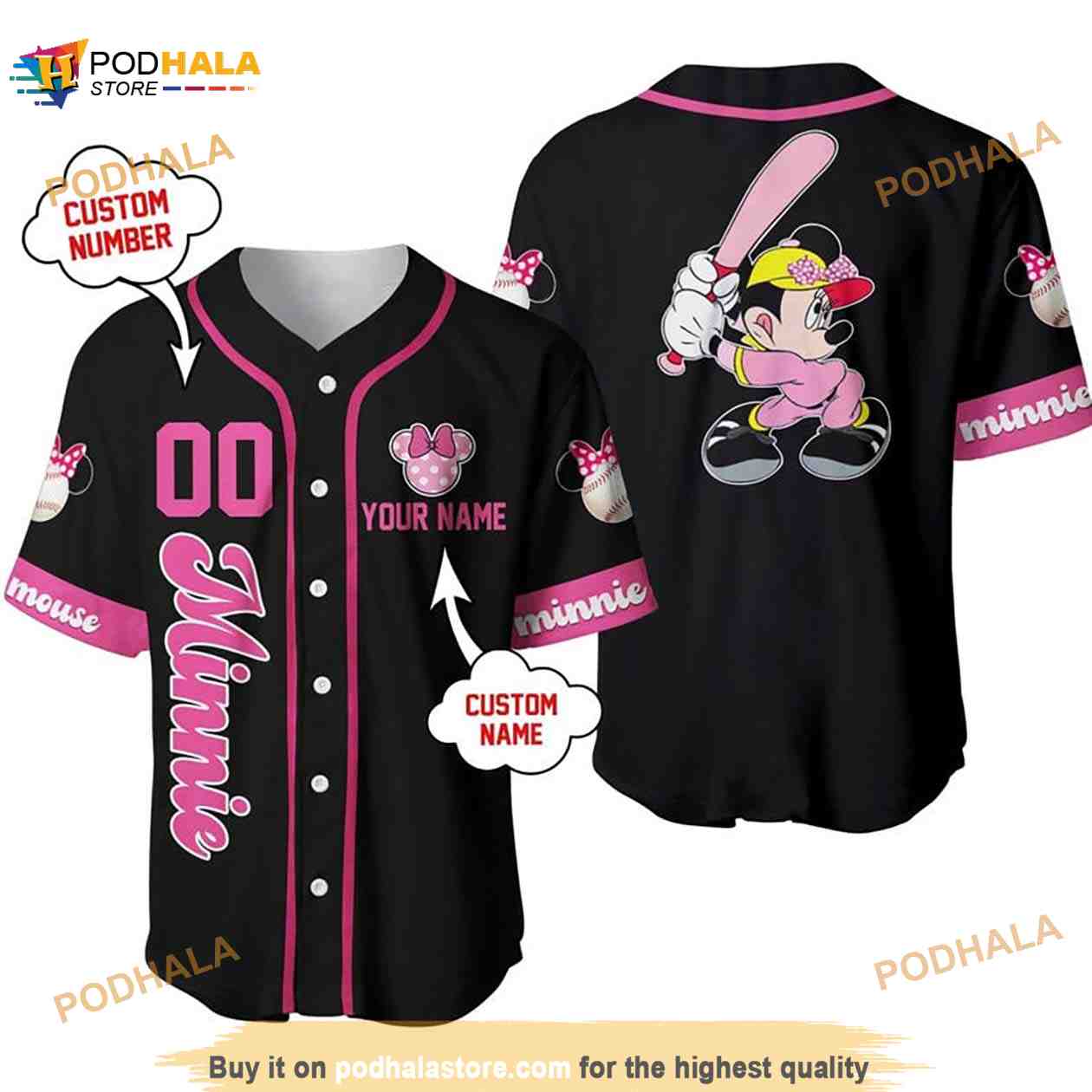 Personalized Name Minnie Mouse Playing Baseball 3D Baseball Jersey