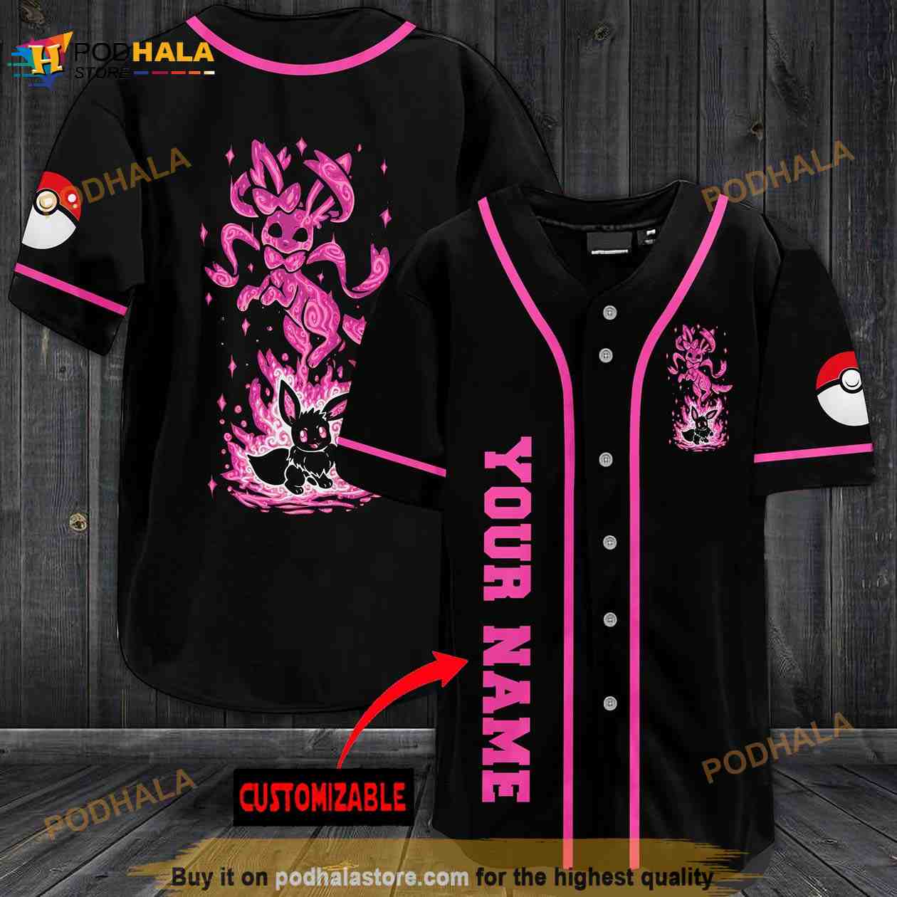 Personalized Name Pink Eevee Pokemon 3D Baseball Jersey