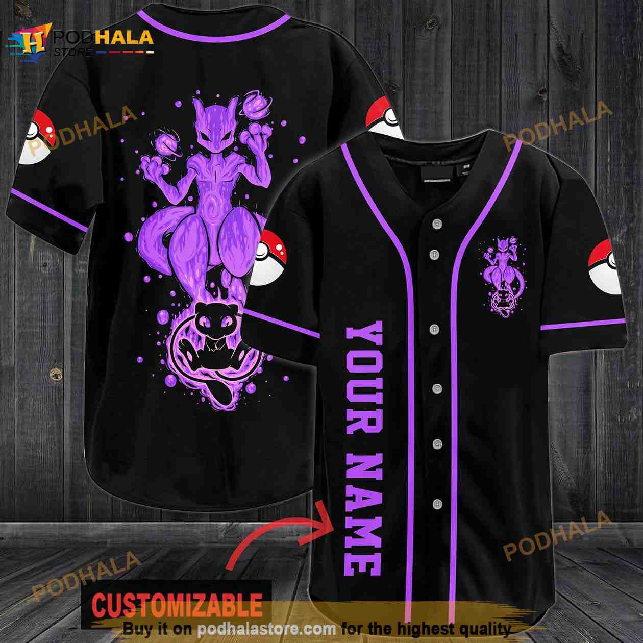 Personalized Name Purple Mewtwo Pokemon 3D Baseball Jersey