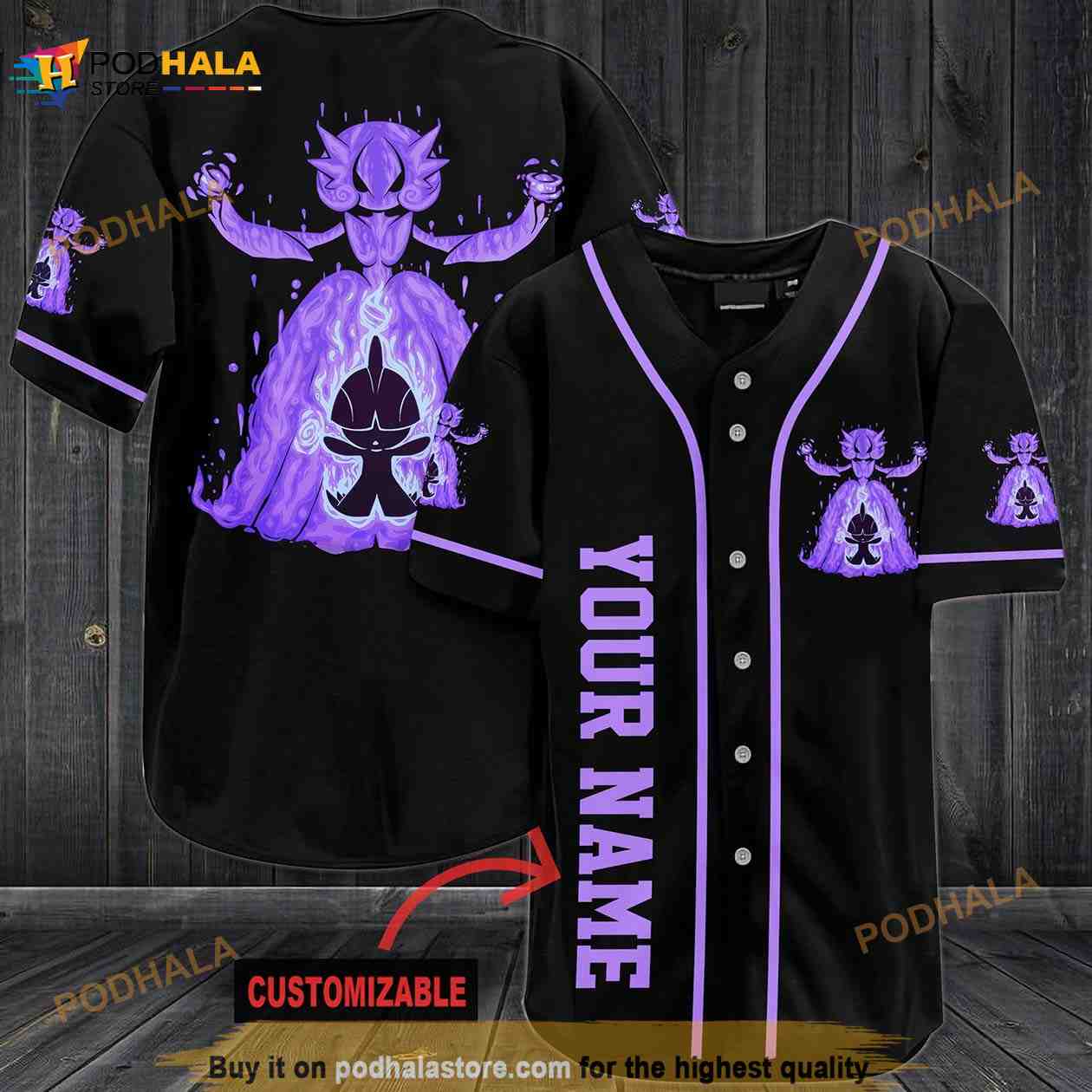 Personalized Name Purple Pokemon 3D Baseball Jersey