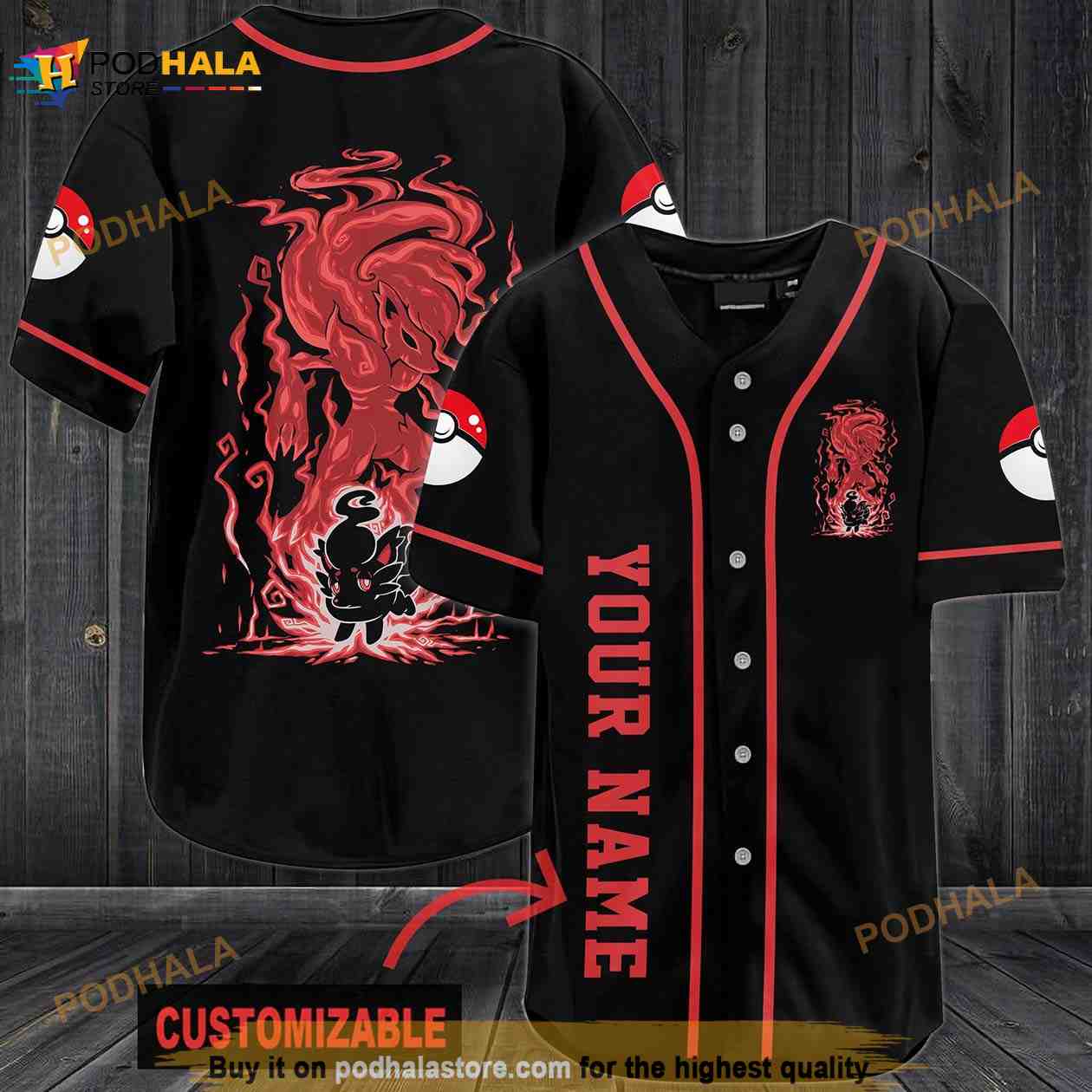 Personalized Name Red Pokemon 3D Baseball Jersey