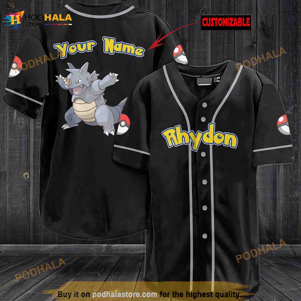 Personalized Name Rhydon Pokemon 3D Baseball Jersey