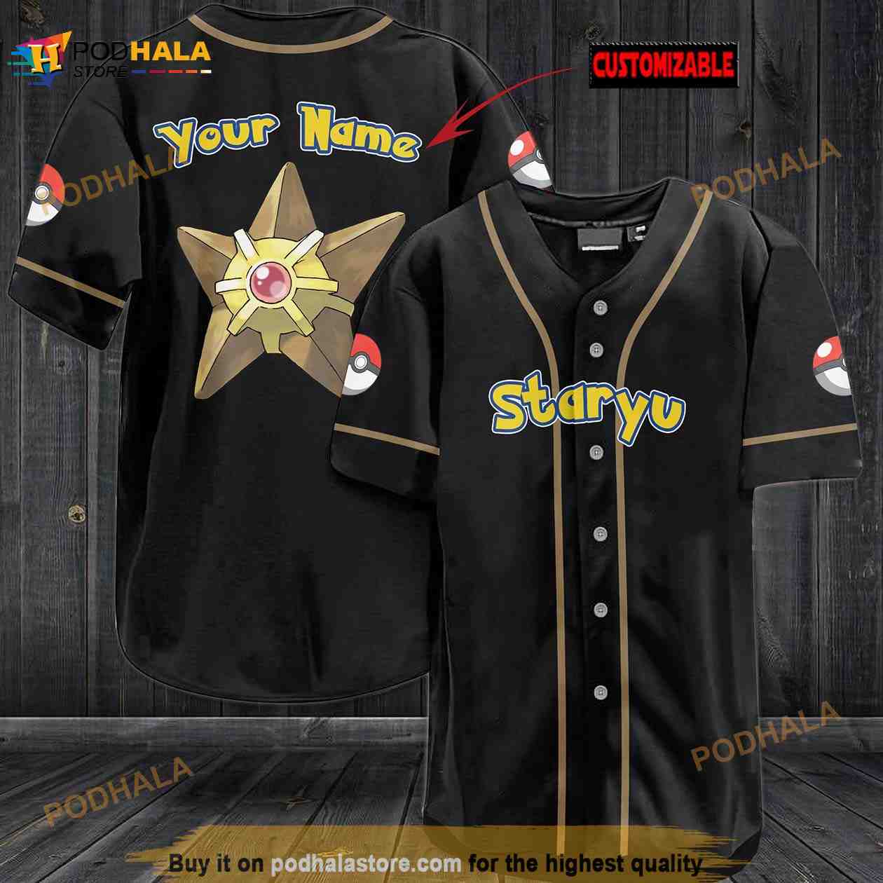 Personalized Name Staryu Pokemon 3D Baseball Jersey
