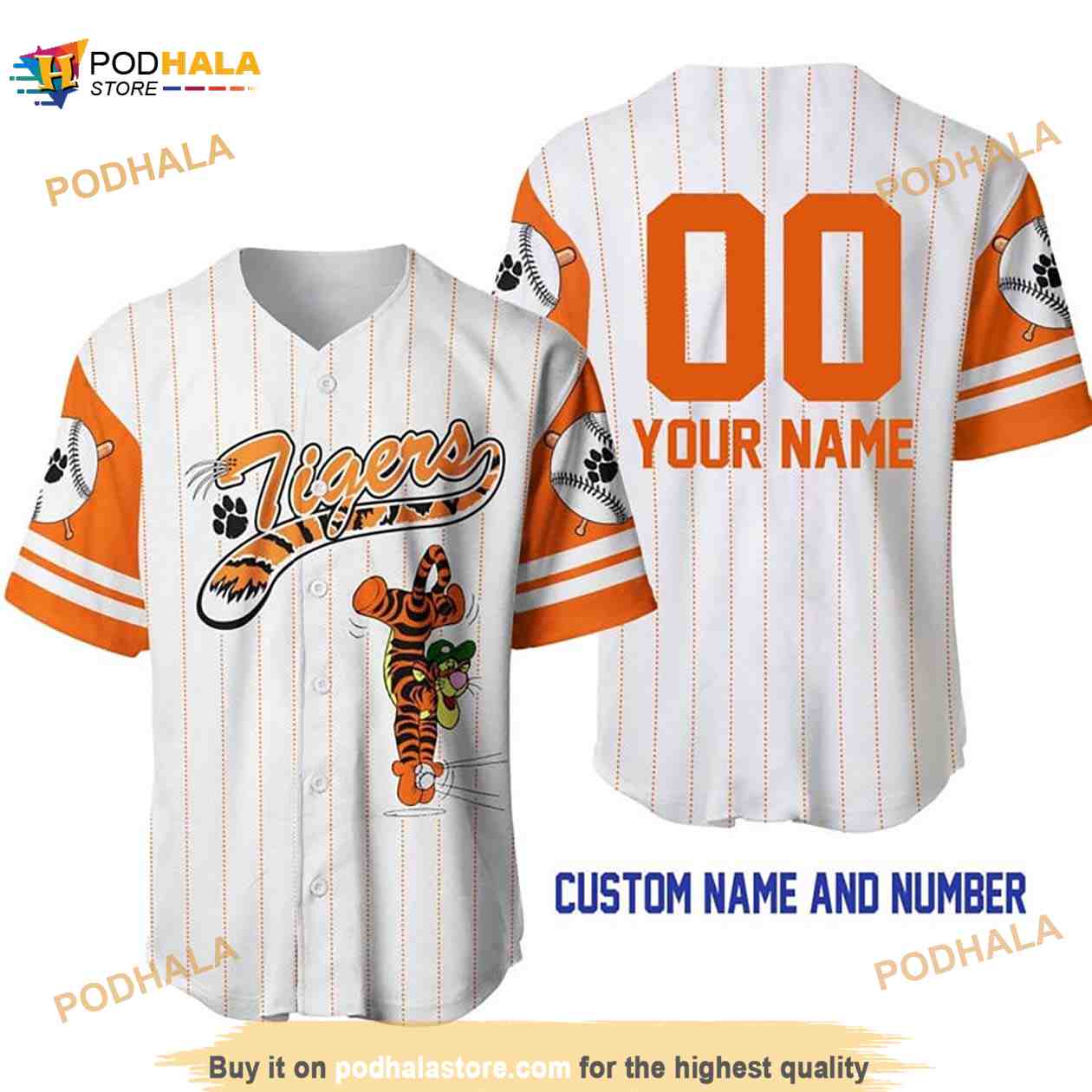 Personalized Name Tigger Tiger Winnie The Pooh Pinstripe 3D Baseball Jersey
