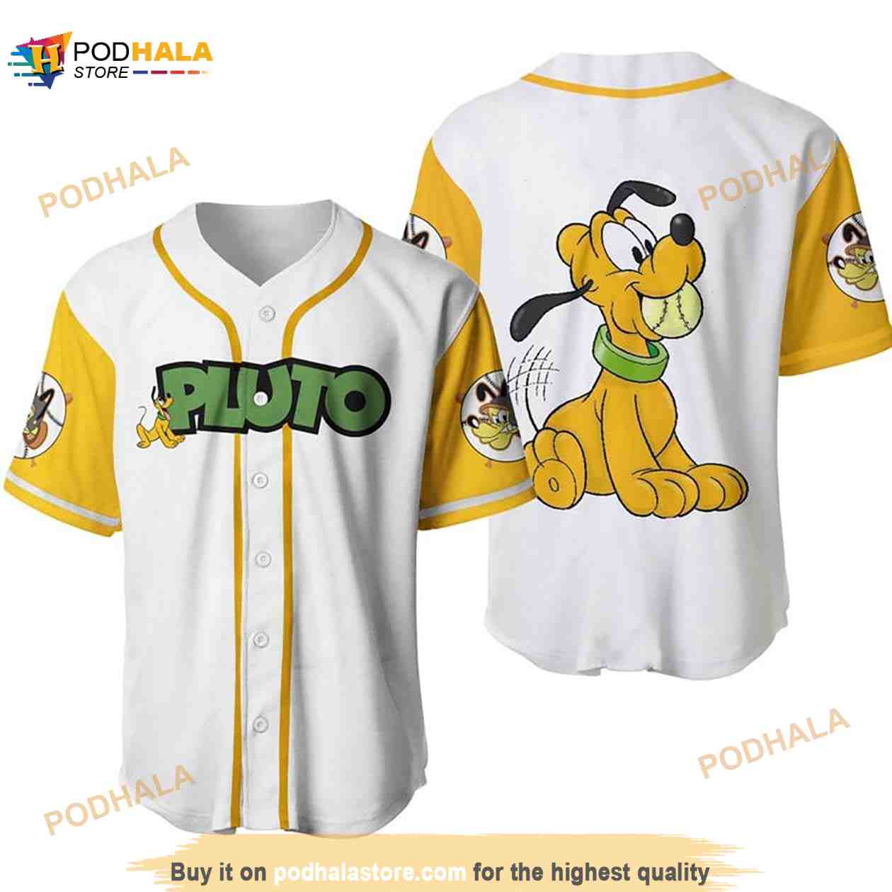 Pluto Dog Disney Cartoon Graphics Unisex 3D Baseball Jersey Yellow