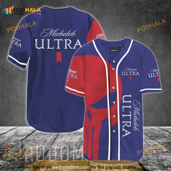 Red Skull Michelob Ultra 3D Baseball Jersey Shirt