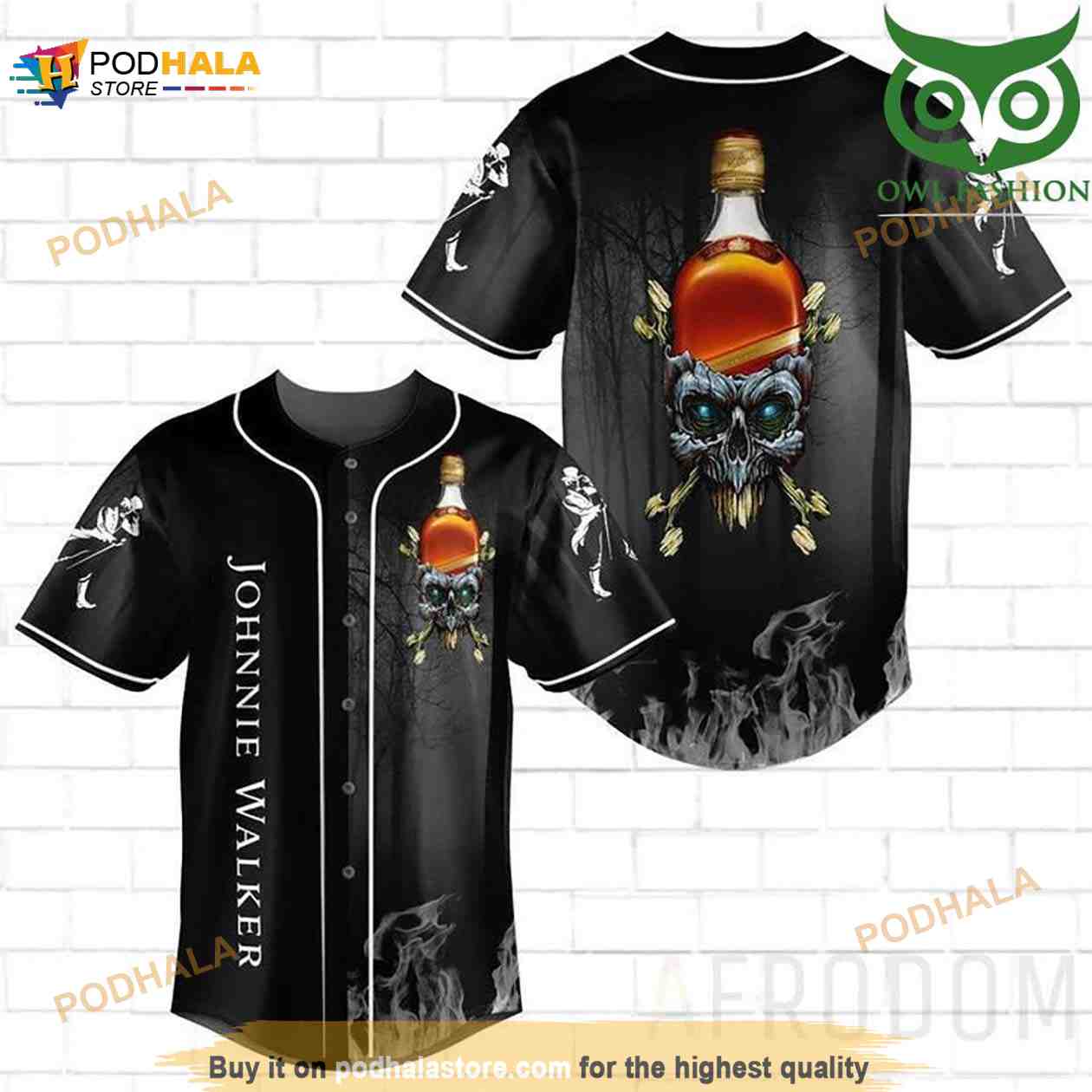 Skull Fire Johnnie Walker 3D Baseball Jersey