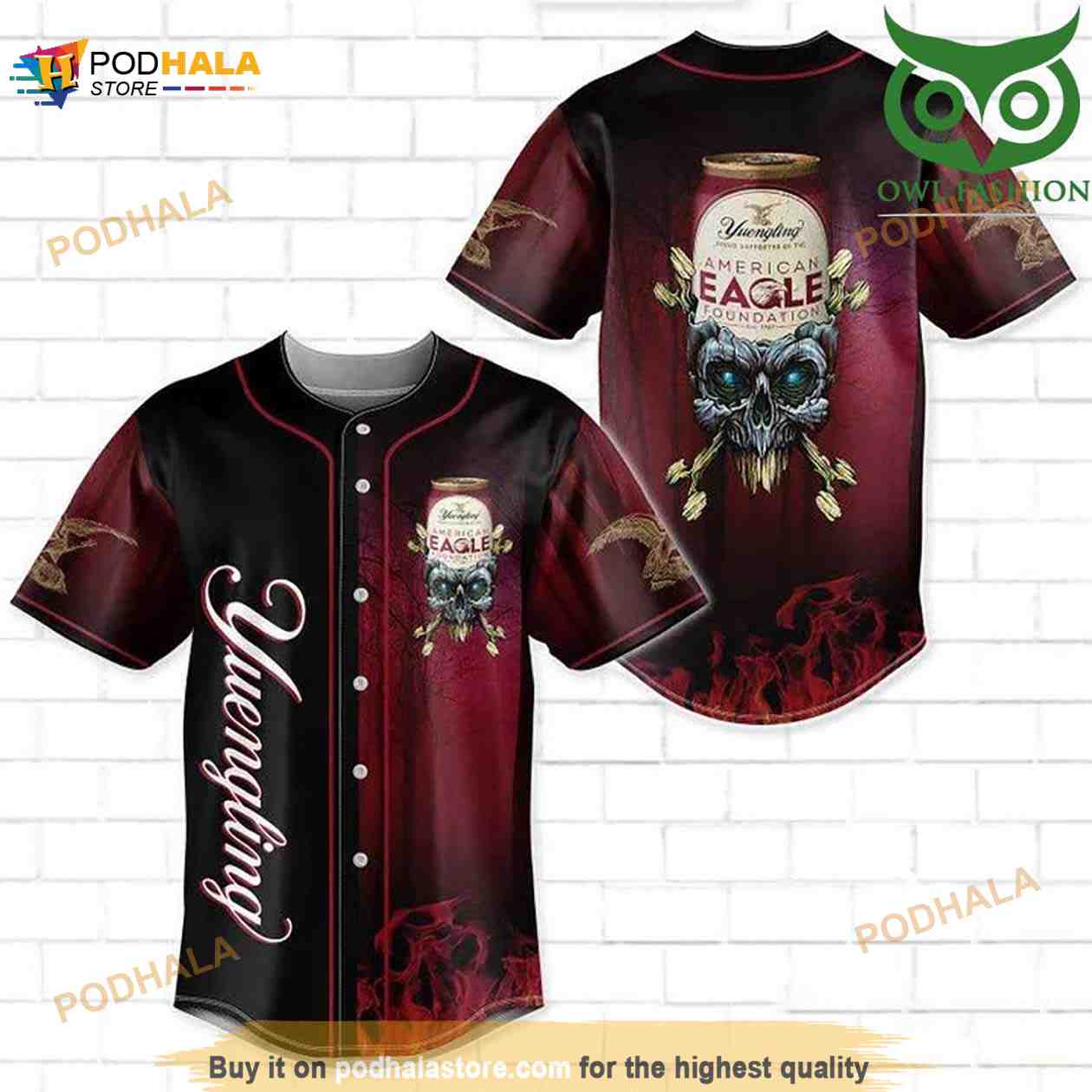 Skull Fire Yuengling Beer 3D Baseball Jersey